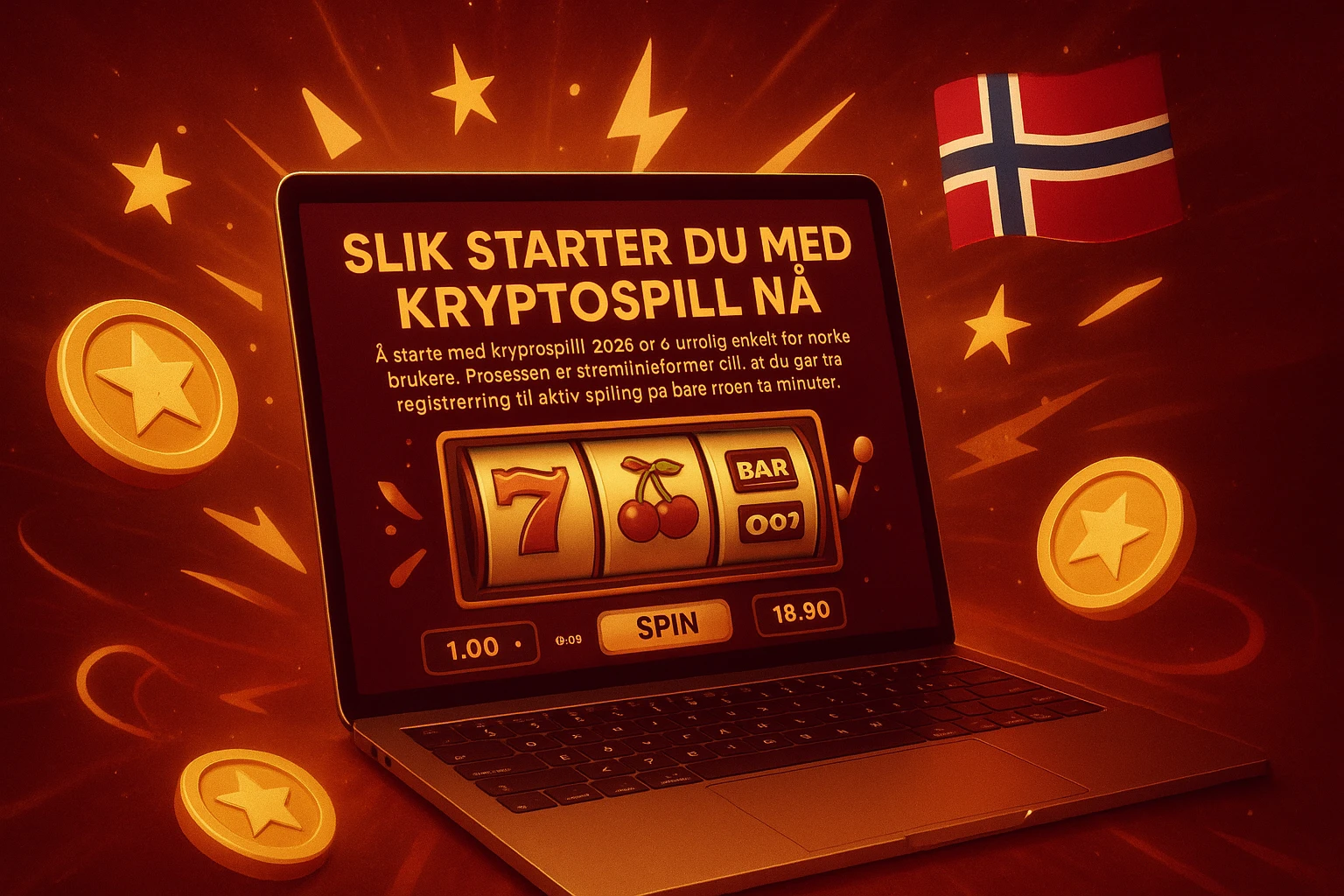 Å starte med kryptospill i 2026 er utrolig enkelt for norske brukere. Prosessen er strømlinjeformet slik at du går fra registrering til aktiv spilling på bare noen få minutter. Her er de nøyaktige stegene du må følge for en trygg start.